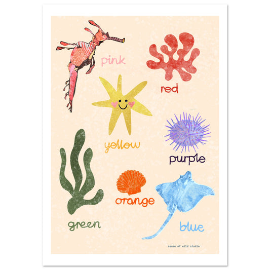 Learning Colours - Hand Illustrated Animals of Tasmania Series Art Print for Kids