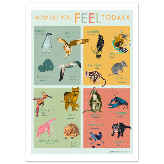 Tasmanian Animals - 'How Do You Feel Today?' Hand Illustrated Art Print