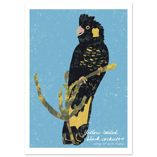 Yellow-tailed Black Cockatoo Print - Hand Illustrated Animals of Tasmania Series